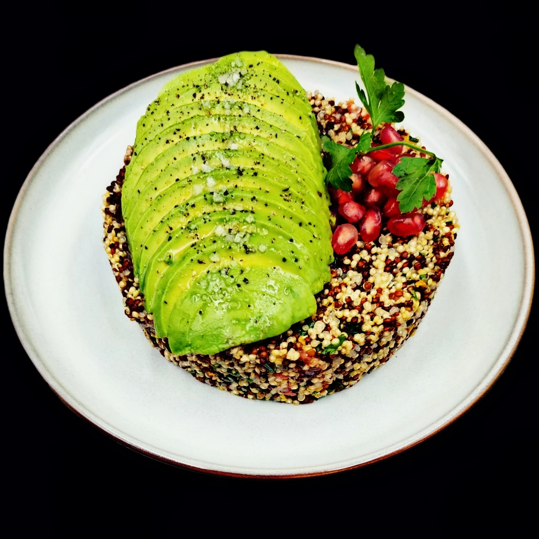 Salade Quinoa, mangue, avocat, grenades, l’huile d’olive citron…
