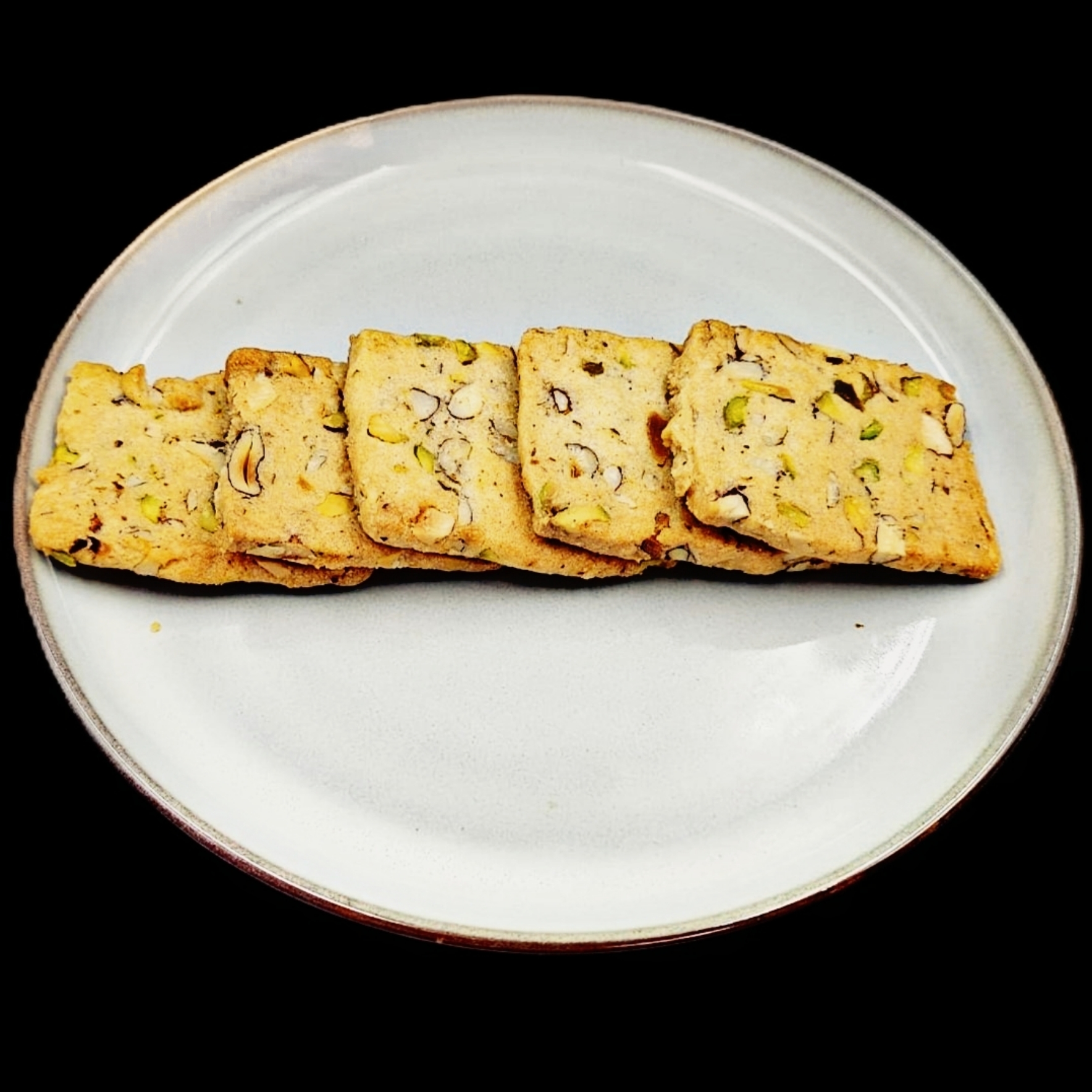Reglette of sweet dry petit fours shortbread with pistachio, almonds, hazelnuts…