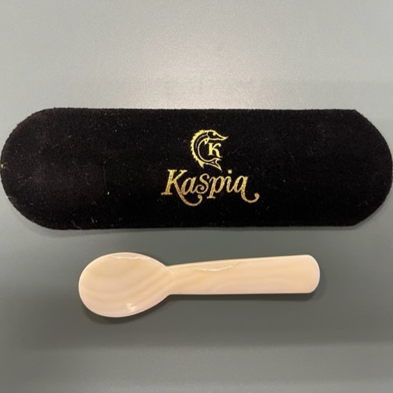Ustensile indispensable à toute dégustation de caviar, la petite cuillère en nacre Kaspia permet de profiter de toute la puissance du goût iodé des petites perles de la mer, sans risquer d’en dénaturer le goût.